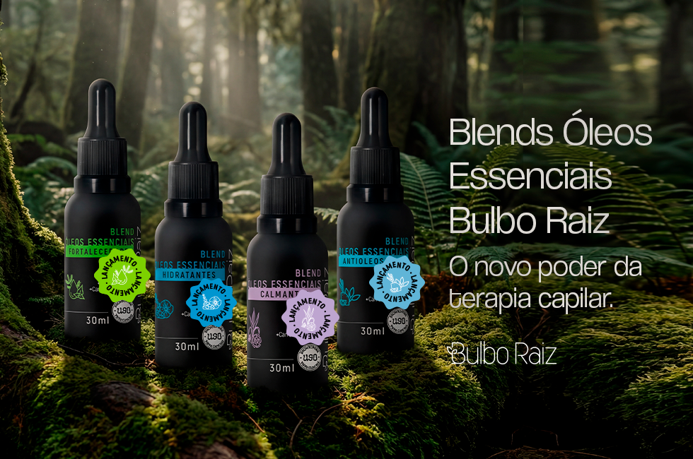 Os Blends de Óleos Essenciais Bulbo Raiz nasceram para unir ciência, aromaterapia e terapia capilar em um único gesto de cuidado. Eles não são apenas fragrâncias agradáveis, mas combinações calculadas de óleos essenciais em óleo vegetal de jojoba, pensadas para tratar o couro cabeludo com segurança, foco e resultados.